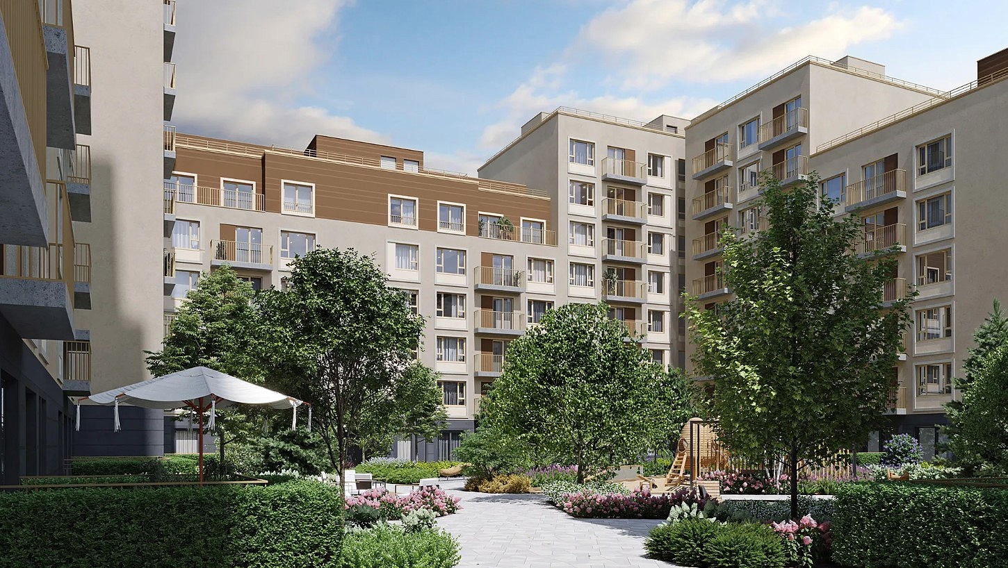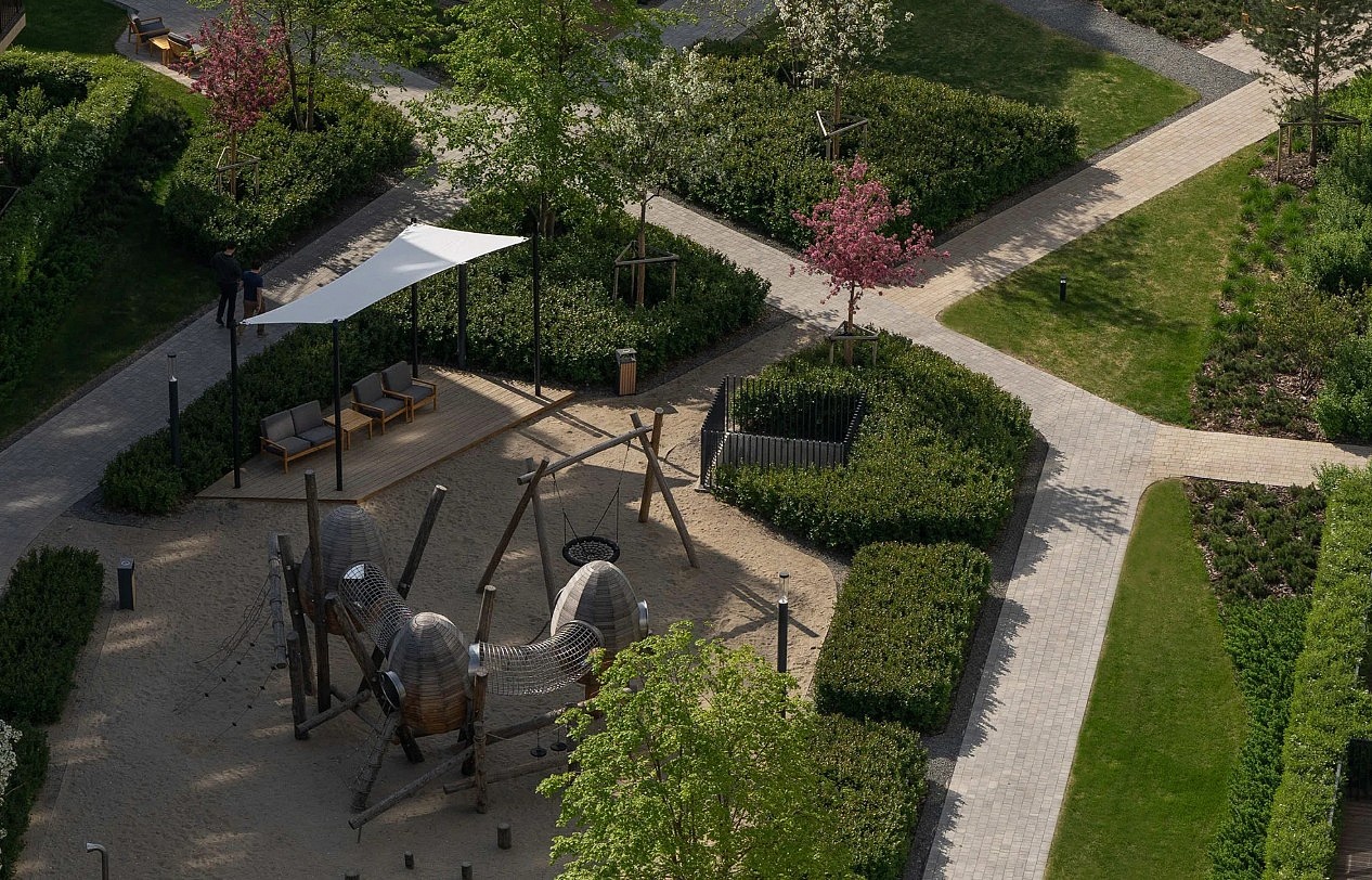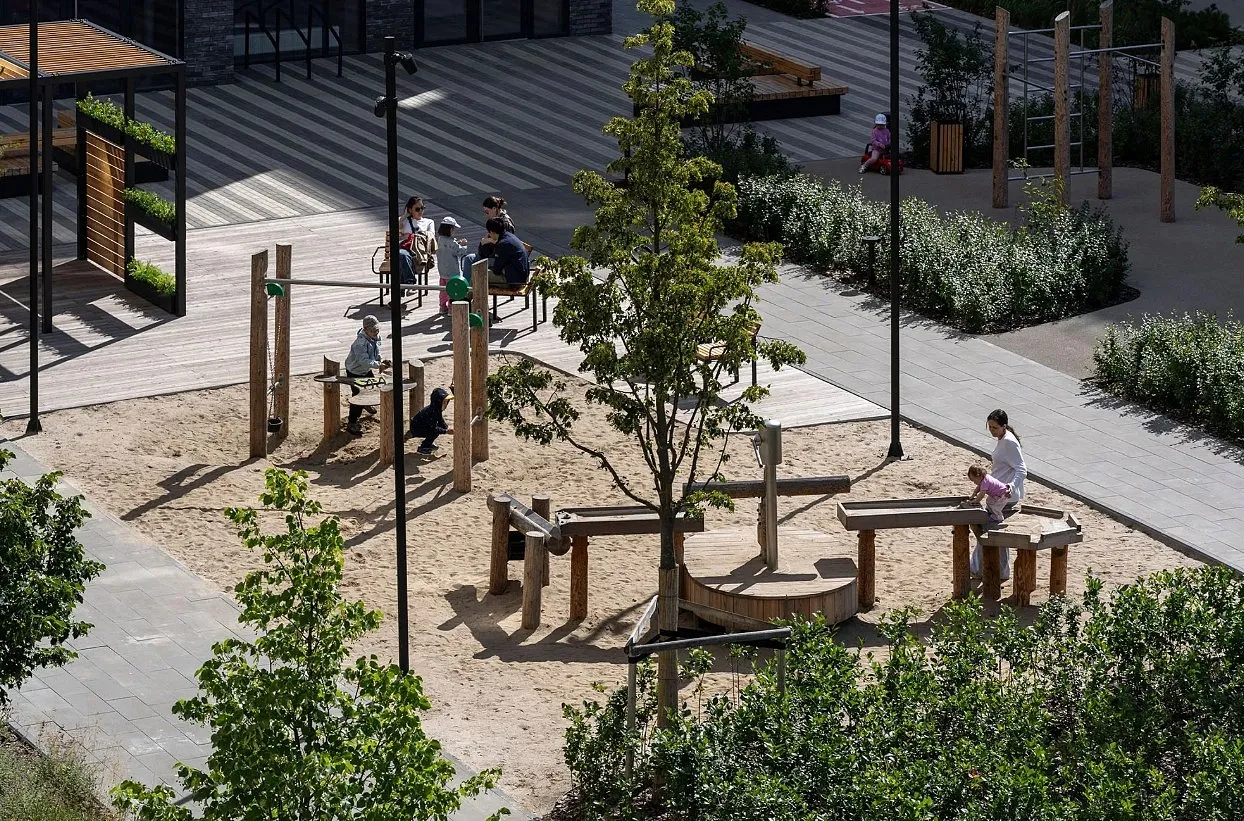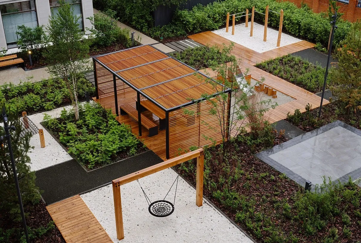 Каждый двор в квартале «Траектория» — продолжение квартиры, только под открытым небом. Здесь можно прогуляться босиком по траве, устроить утреннюю йогу, почитать книгу в гамаке или отправить детей поиграть, не переживая за их безопасность. Дворы будут закрыты от машин, чтобы создать безопасную среду для отдыха. Внутри каждого двора — детские площадки, перголы с тенистыми зонами, мягкие газоны и места для общения с соседями.