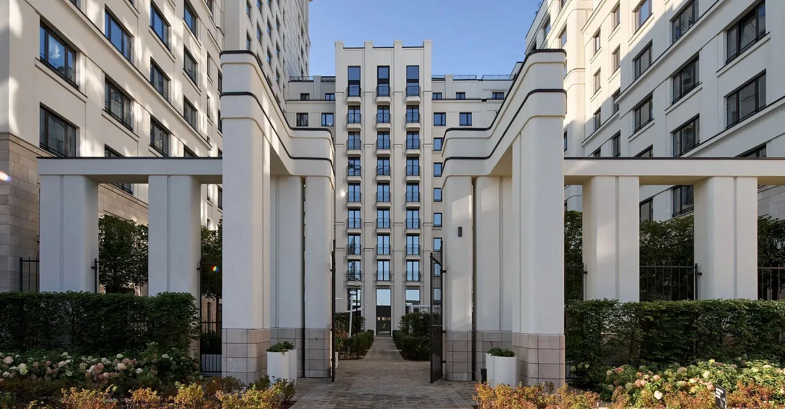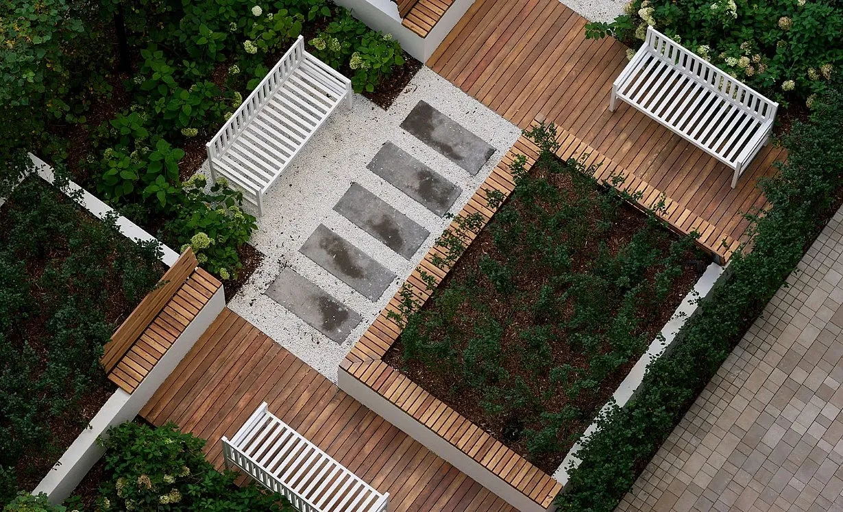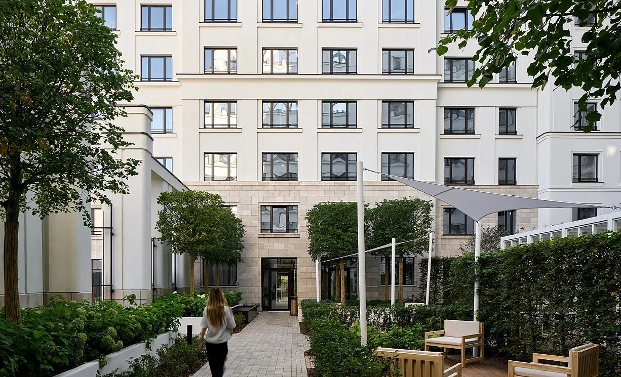 Особенность квартала — общественные пространства и благоустройство нового уровня: городская площадь с фонтаном, центральный пешеходный бульвар, ландшафтный парк, камерные сады и зелёные кровли домов.