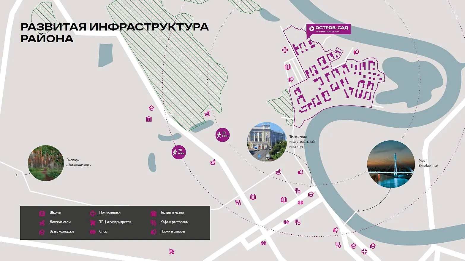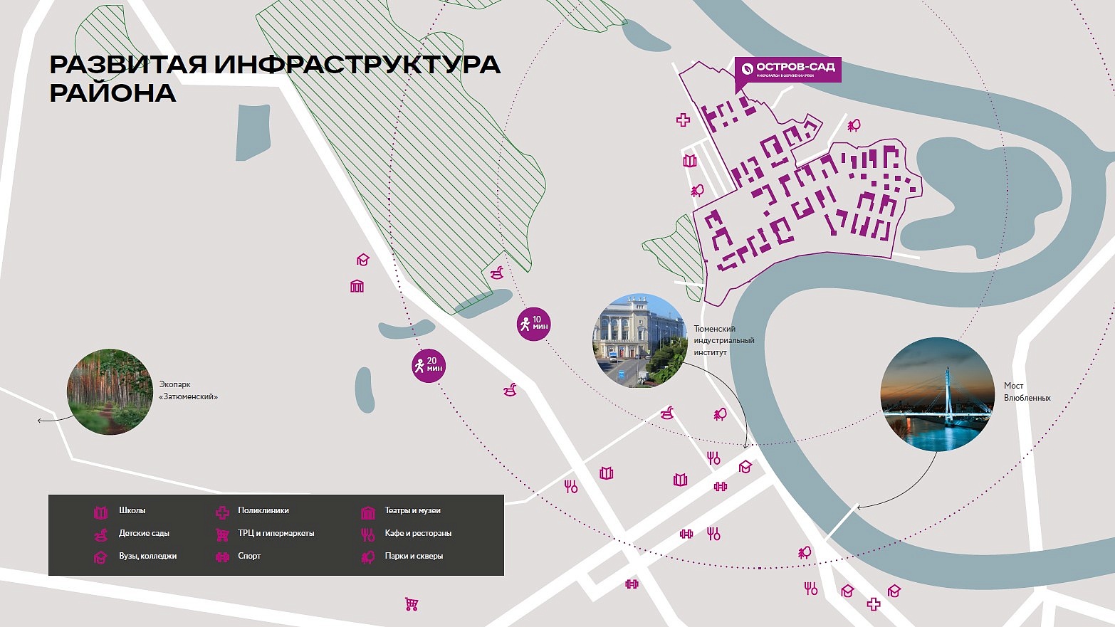 Микрорайон ДОК — уникальное место с богатой историей. В начале прошлого века здесь была открыта лесопилка, которая позже стала одним из первых советских предприятий в Тюмени. Завод играл значимую роль в экономике города — напоминанием о нём станет отделка из красного кирпича и необычная ступенчатая архитектура зданий. Также в архитектуре используются композитные панели, глазурованный кирпич, напоминающий фактуру керамики, и акцентные цвета штукатурки, привлекающие внимание прохожих.