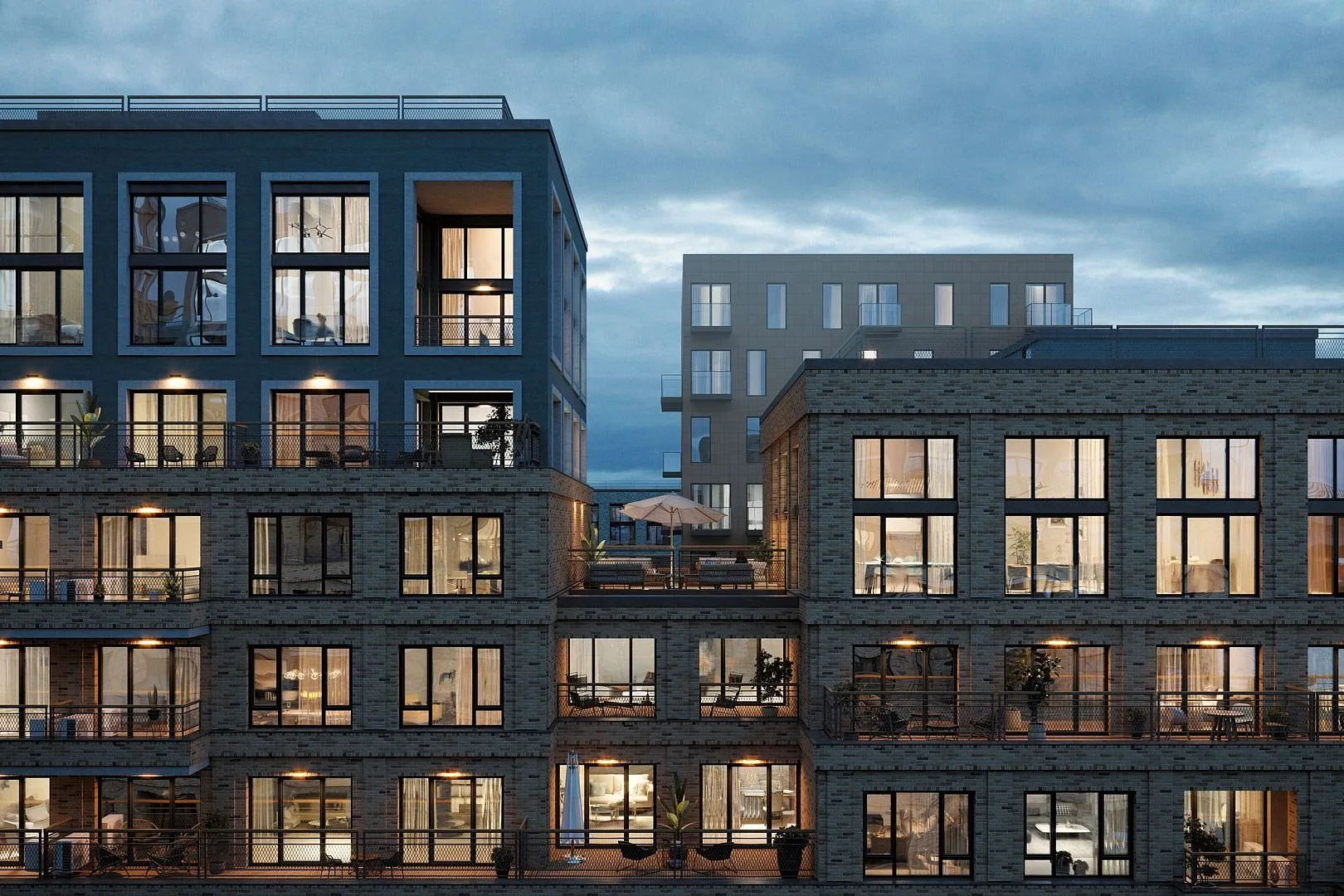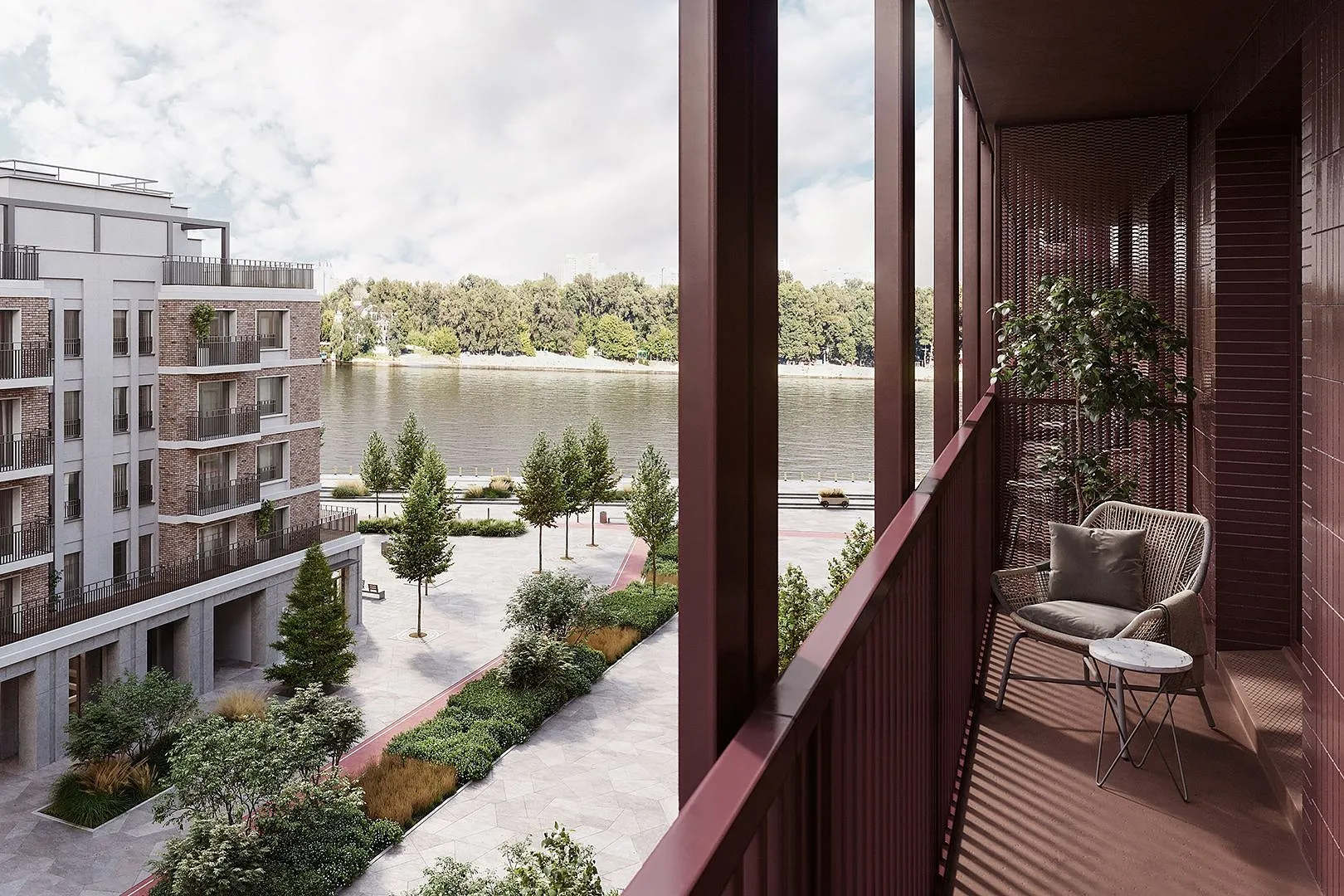 Из окон «Речного порта» можно любоваться на реку или огни ночного города. Квартиру на первых этажах можно выбрать с террасой, антресолями или двумя уровнями, а на верхних — с витражами, террасами и окнами в пол.