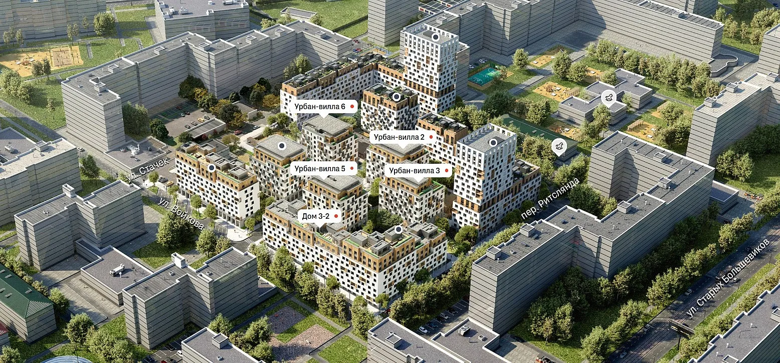 Квартал состоит из многоэтажных домов с тремя башнями по периметру и шести урбан-вилл внутри. В квартале «Северный квартал» сделаны закрытые дворы, свободные от машин, игровые площадки для детей разных возрастов, прогулочные садовые дорожки и спортплощадки. Пространство организовано так, чтобы занимающиеся спортом не беспокоили отдыхающих, а дети играли в безопасном месте двора