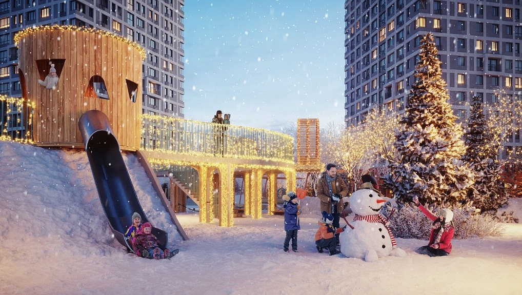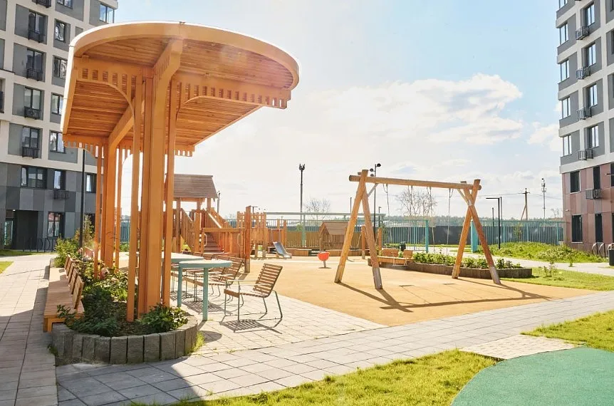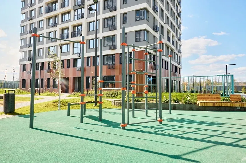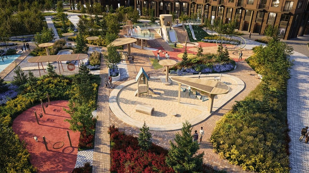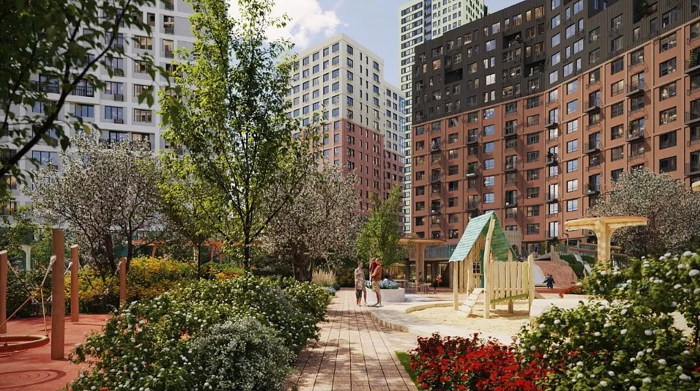 Двор-сад с приватной территорией и собственным бульваром. Детские площадки, воркаут-зоны, арт-объекты и места для тихого отдыха. Вход во двор по системе face id - создаст дополнительную безопасность.