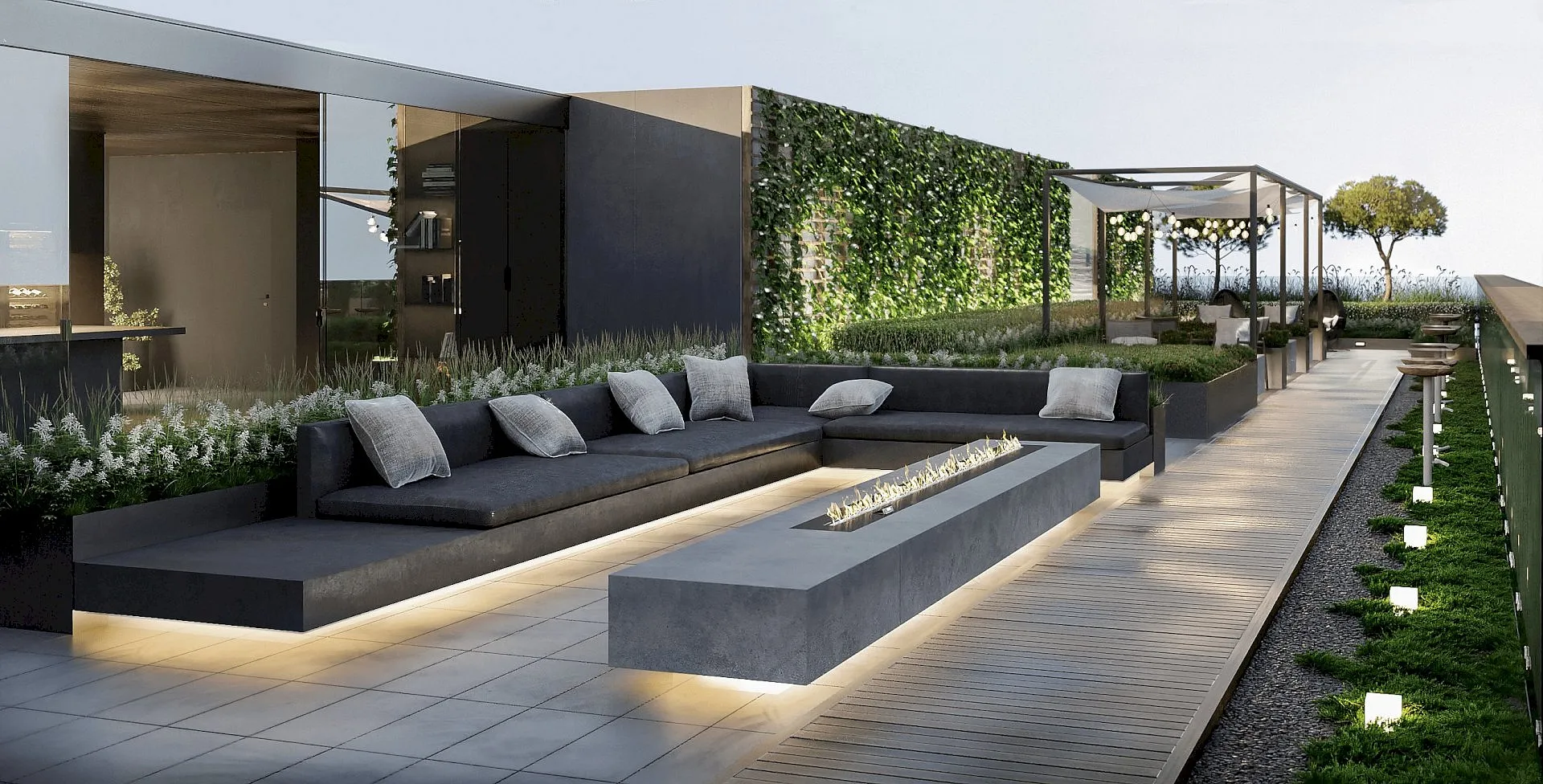Дом дарит ощущение открытости и энергичности, одновременно обеспечивая приватность и уединение.