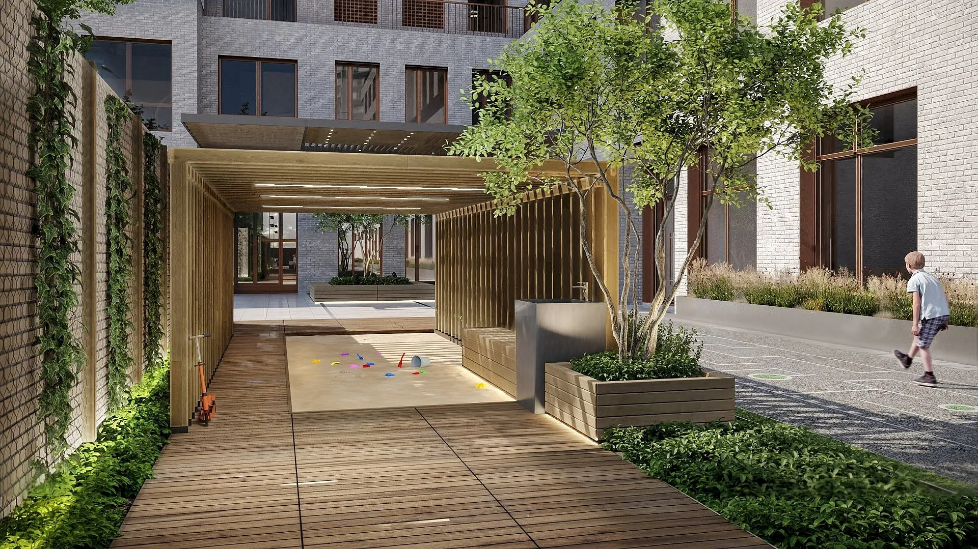 ДЛЯ ДЕТЕЙ. Кастомная детская площадка в безопасной зоне. Колясочные и велосипедные. Туалетные комнаты на первых этажах в лобби.