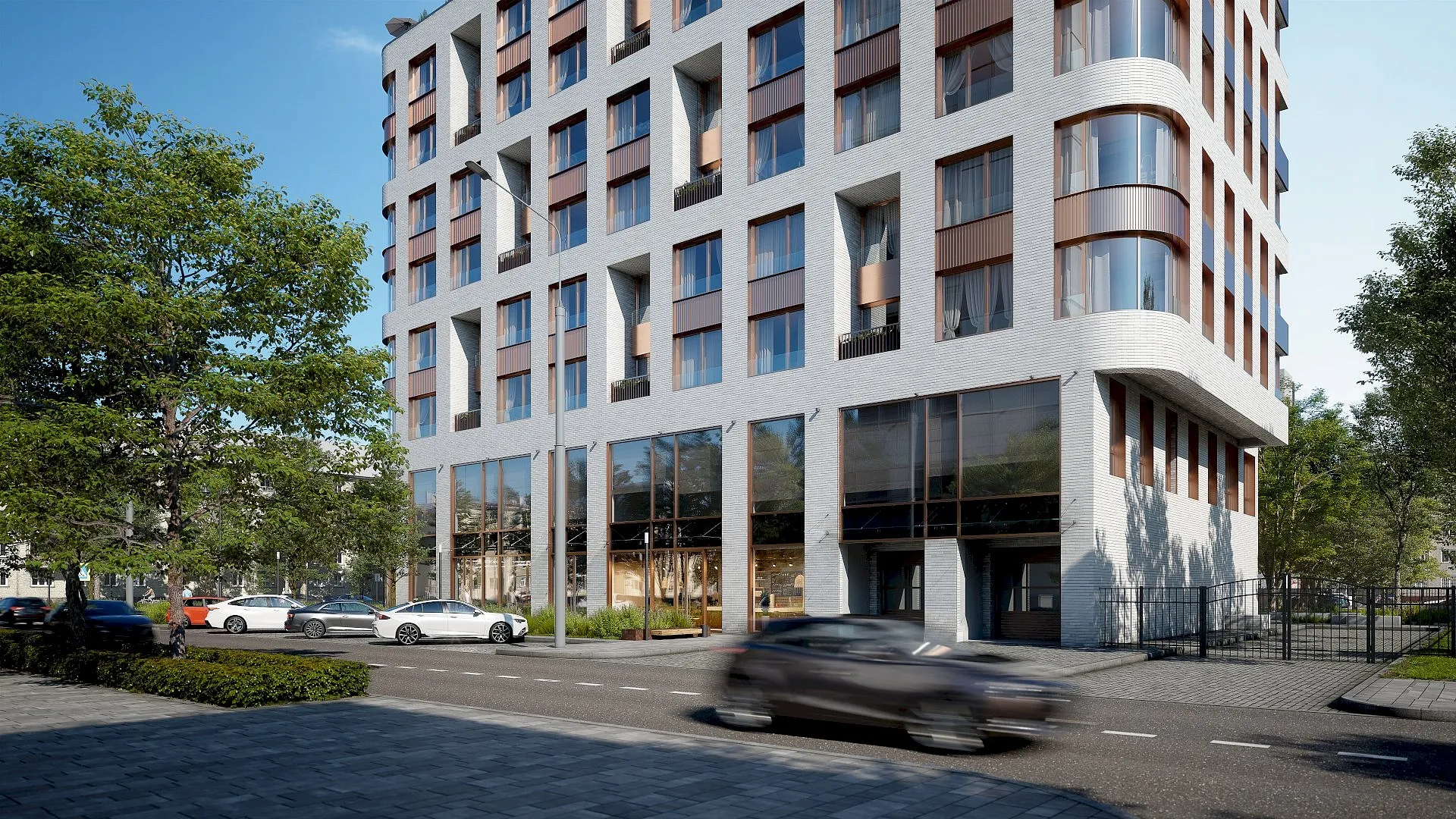ИНФРАСТРУКТУРА. Дом – многофункциональный комплекс с магазинами на первом этаже и офисами на втором. Зарядки для электрокаров. Эксплуатируемая кровля. КОМФОРТ. Мастер-спальни. Гостевая парковка и такси-поинты. Трехслойные стены с дополнительной шумоизоляцией. Келлеры на цокольном этаже.